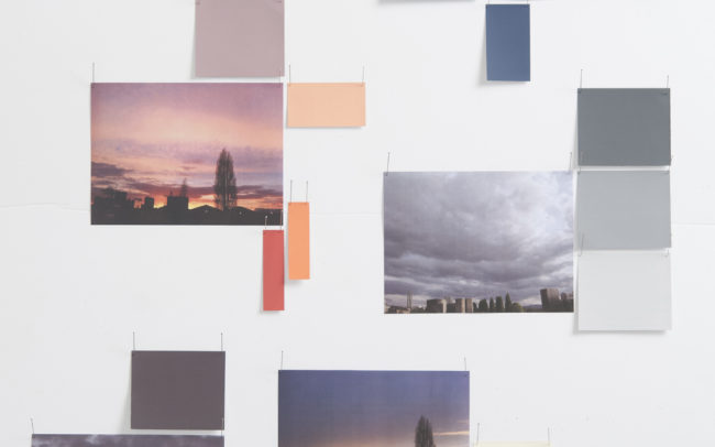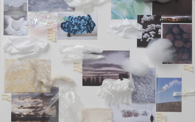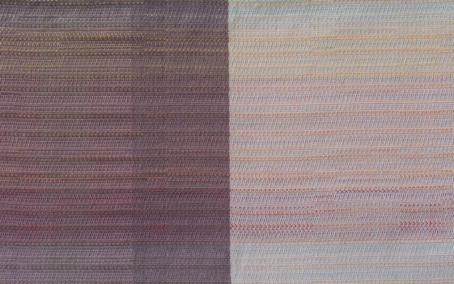 Farben und Materialien verwob ich zu Textilien, die den Himmel mal an einem flirrenden Sommertag, in der Abenddämmerung oder als drückende Gewitterdecke erscheinen liessen. Als Ausgangslage dienten mir eigens fotografierte Bilder des sich immer wandelnden, so vielfältigen Himmels.