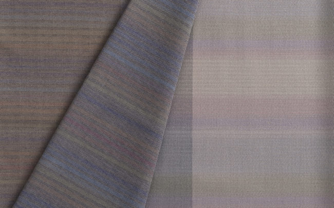 Einerseits entstanden experimentelle Stücke die sich durch ihre Habtik und Materialien dem Himmel annähern, andererseits feinstrukturierte Stoffe, deren lange Muster- und Farbrapporte der Weite des Himmels Ausdruck verleihen. Einige Entwürfe konnte ich in der Industrieweberei von der Firma Lantal Textiles AG auf einer bestehenden Kette abweben lassen.