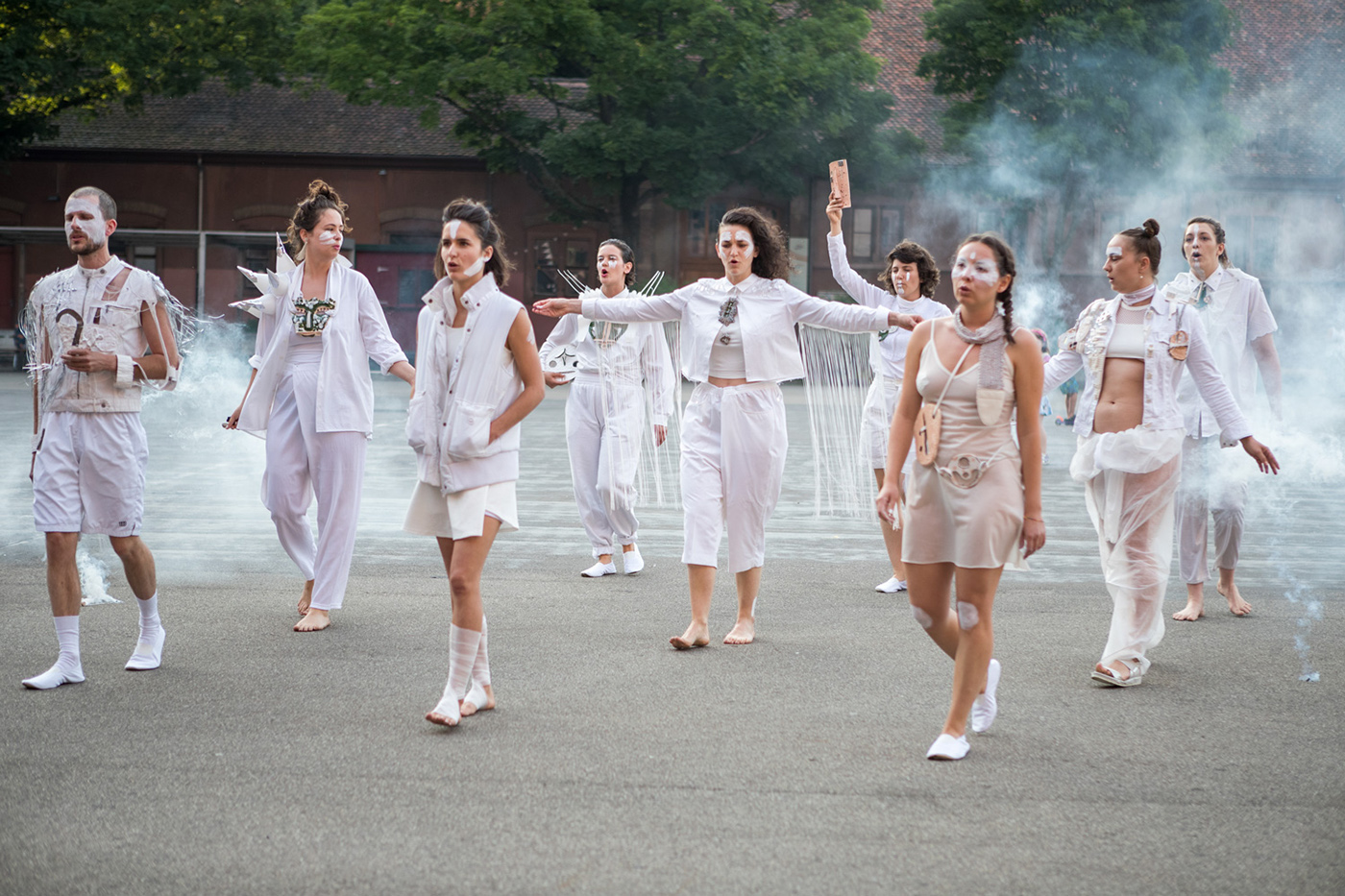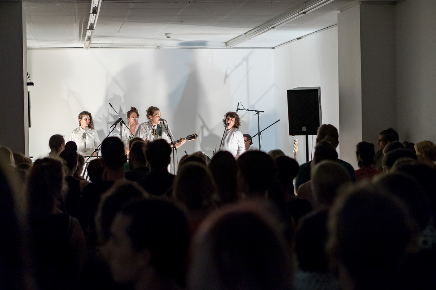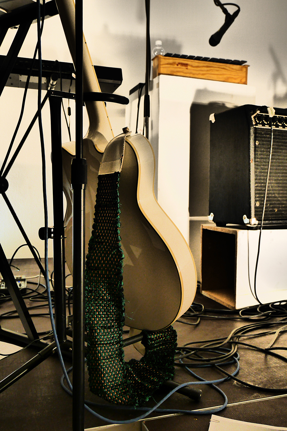 Zwei Bands werden neu gegründet und geben gleichzeitig, im selben Raum, ihr erstes und einziges Konzert. Ein Kollektivprojekt, bei welchem verschiedenste Menschen ihren Beitrag dazugeben; von Songtexten und Performen über Knowhow bis hin zu den Kostümen. Mein Anteil sind vier Gitarrengurte.